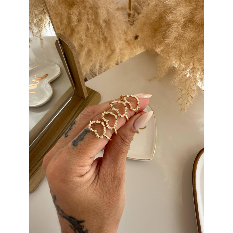 ANEL CORAÇÃO VASADO ZIRCONIA DOURADO