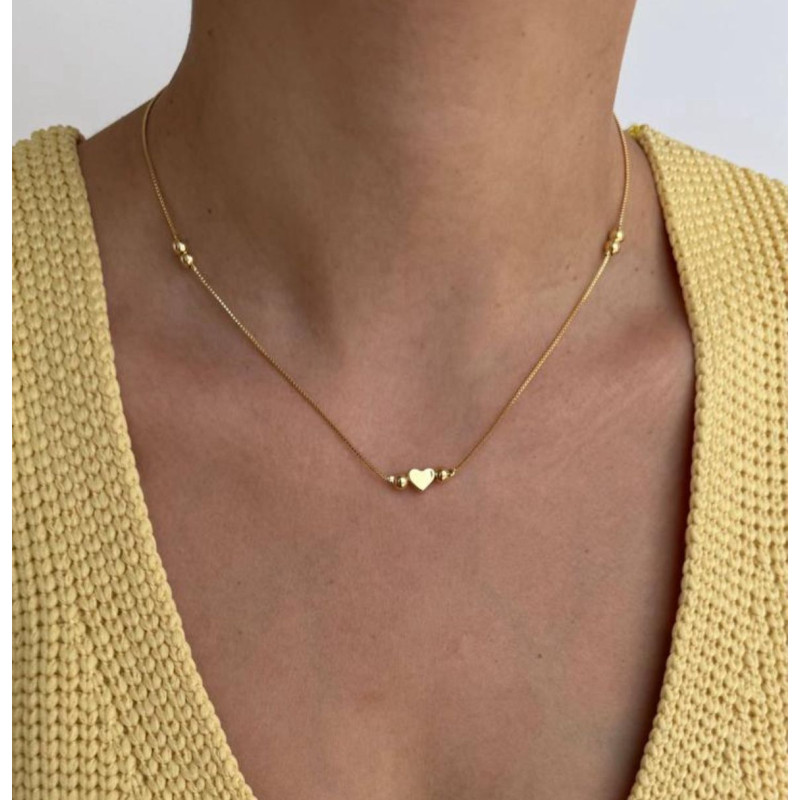 CHOKER CORAÇÃO BOLINHAS FOLHEADA